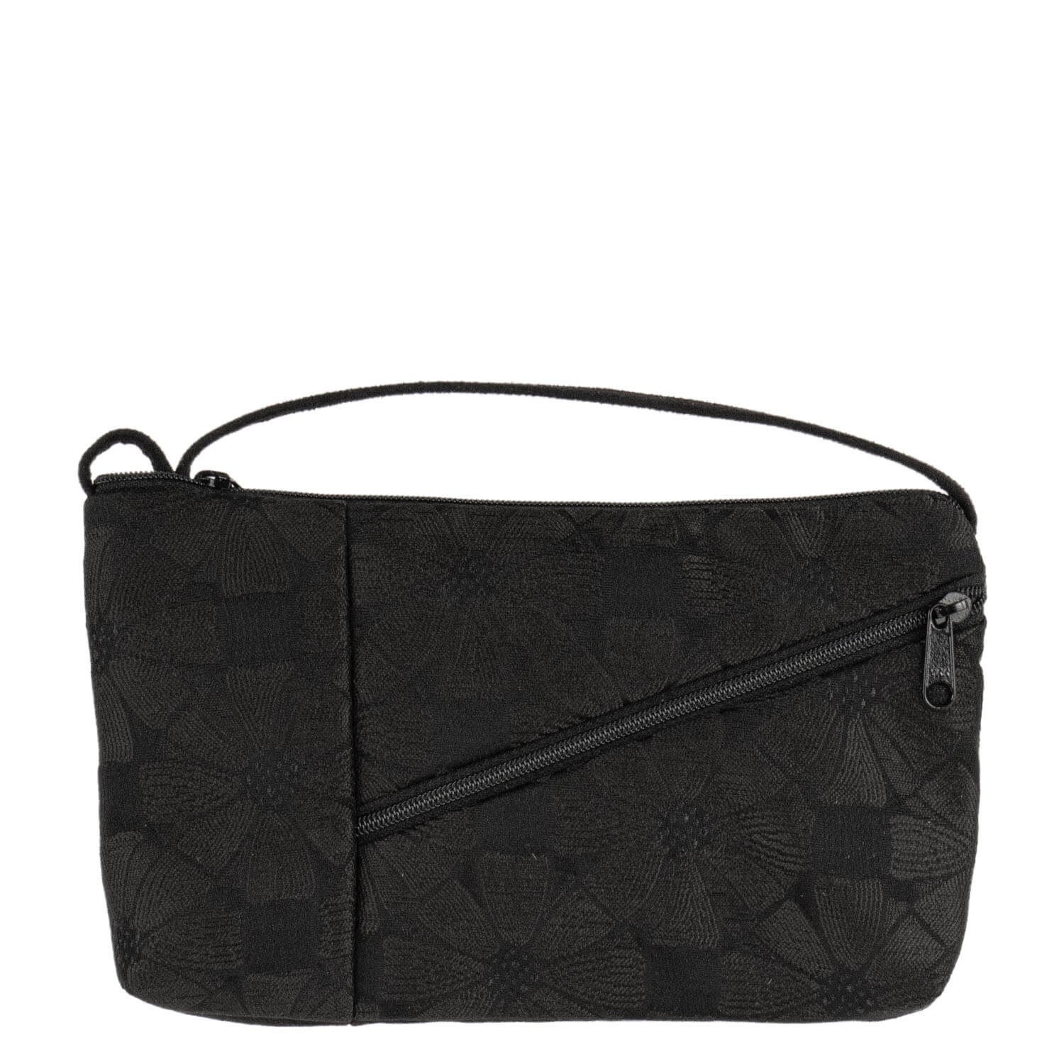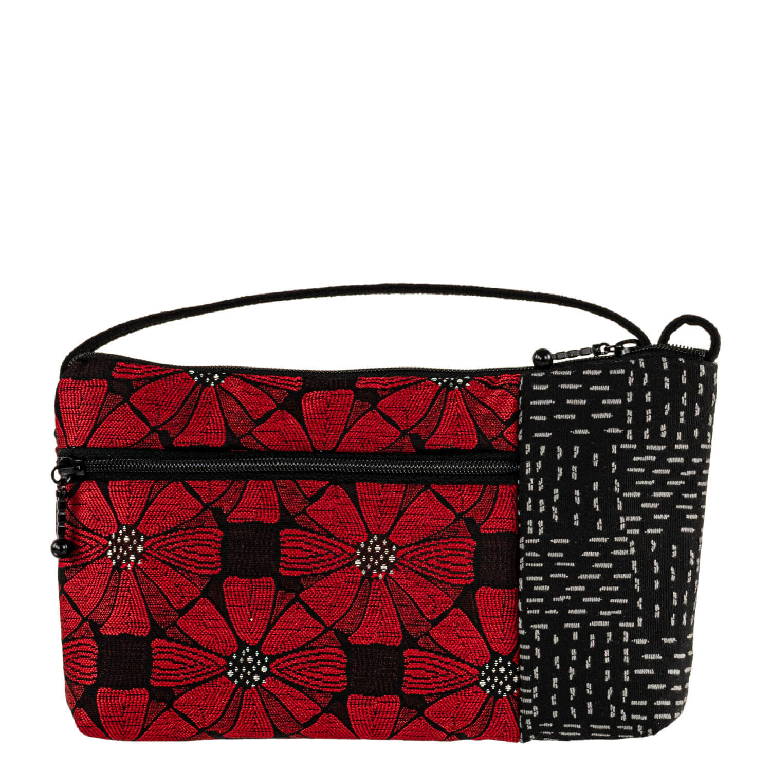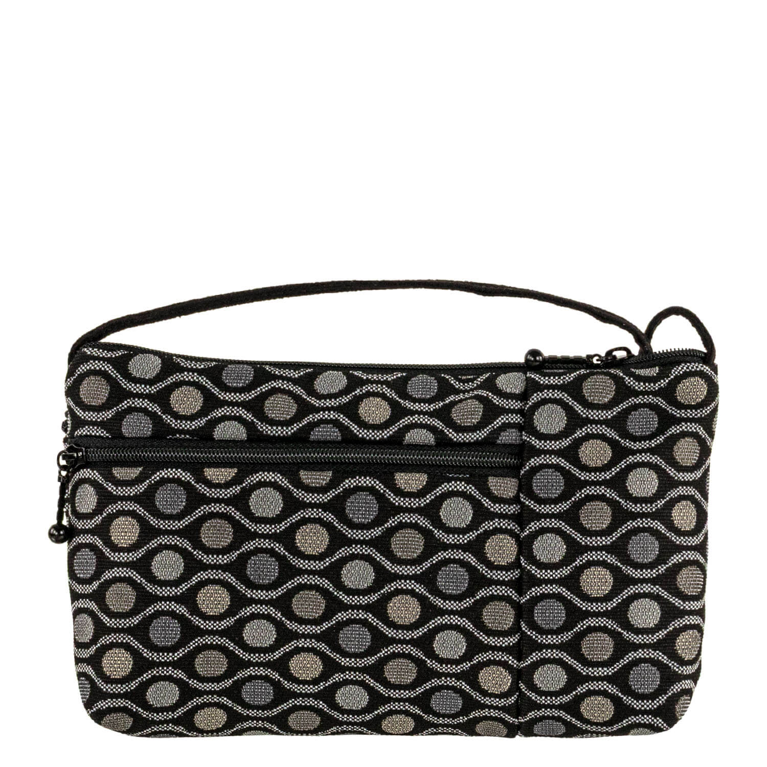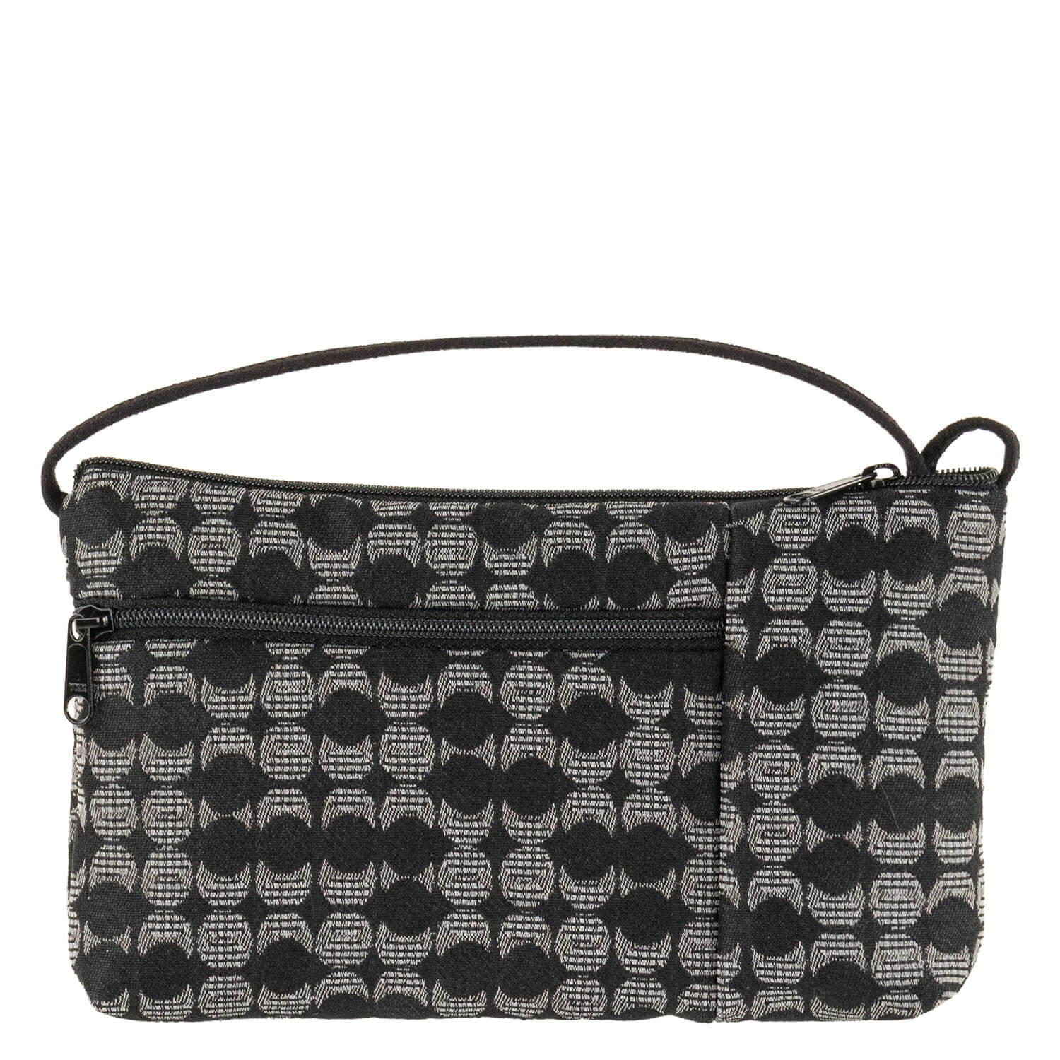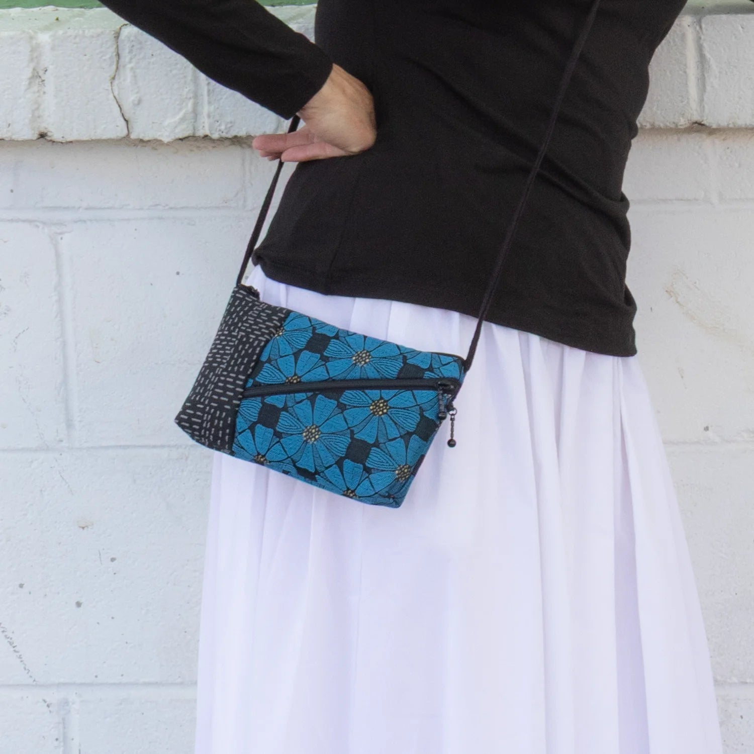This bag features a sling that serves as a wallet! Perfect for those who prefer a horizontal design. It boasts a roomy main compartment with a zipper, suitable for most iPhones, and two outside pockets. The grey liner inside is water-resistant and easy to wipe clean.