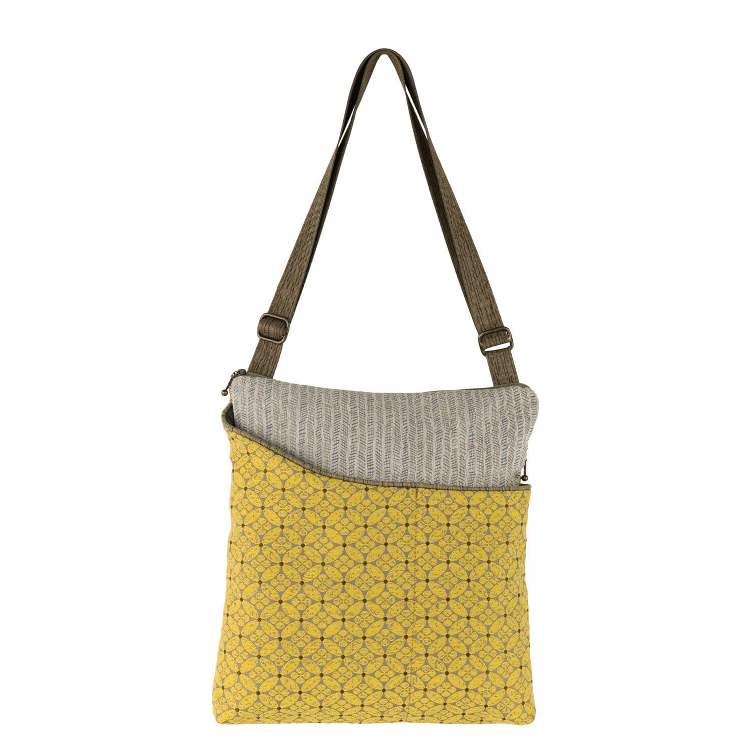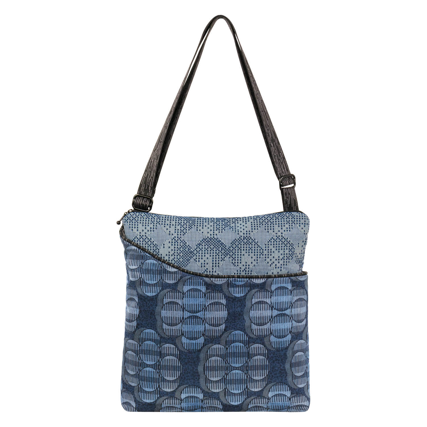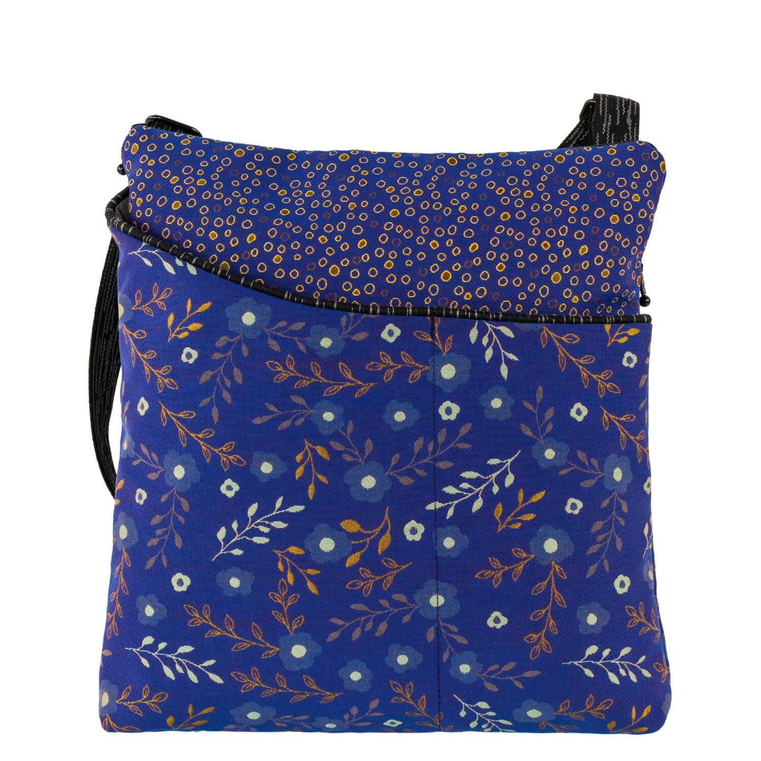 A spacious sling, ideal for individuals who want to blend both their work essentials and personal items or just need a roomier tote! Ample zippered main section with a small inner pocket. Two adjacent open outer pockets, one with a small inner pocket. Back zipper pocket. Adjustable 1” web strap for maximum versatility. Perfect for daily use, work, and trips.