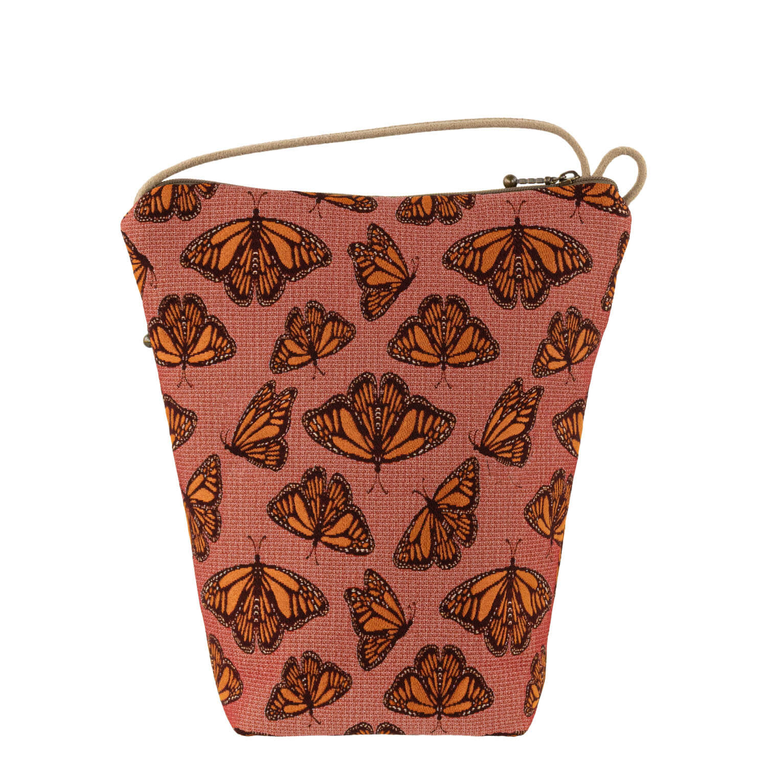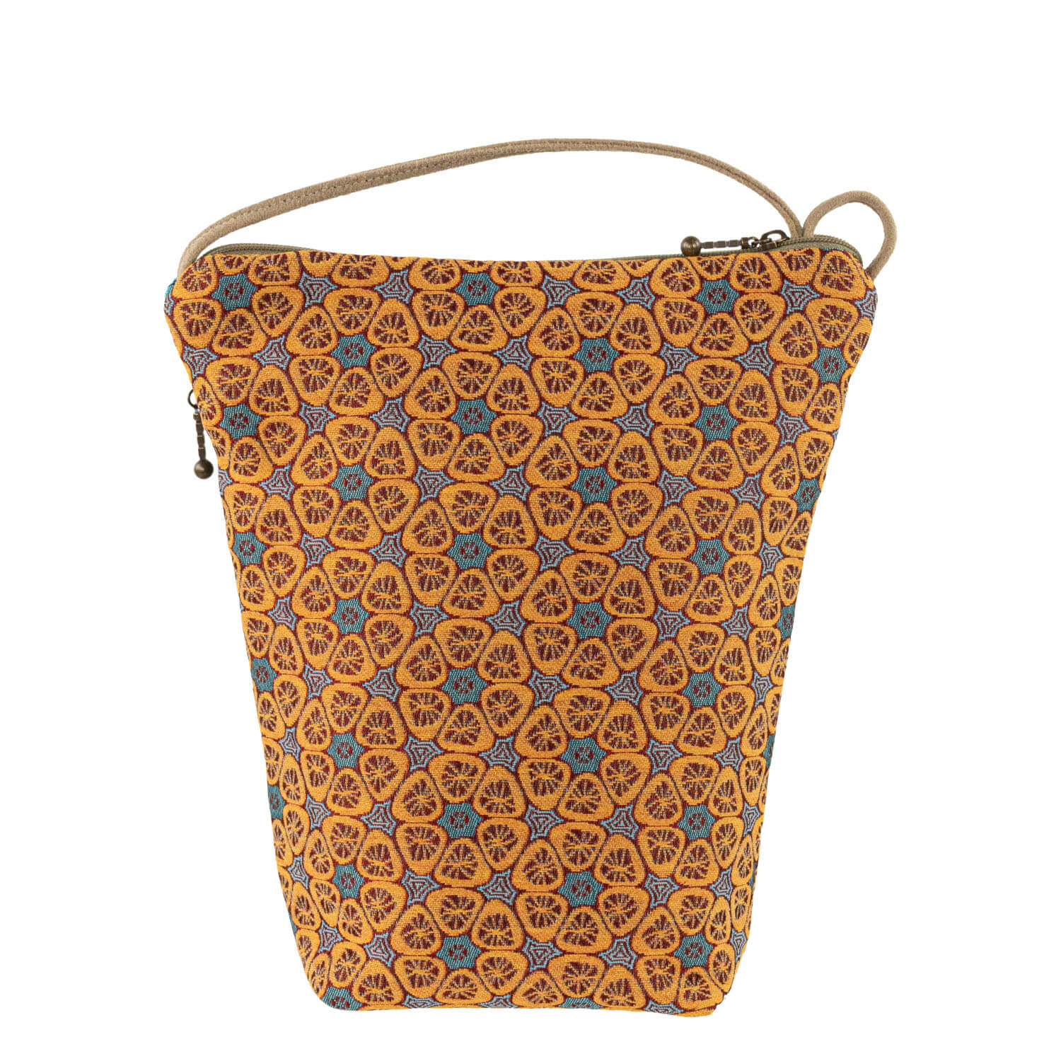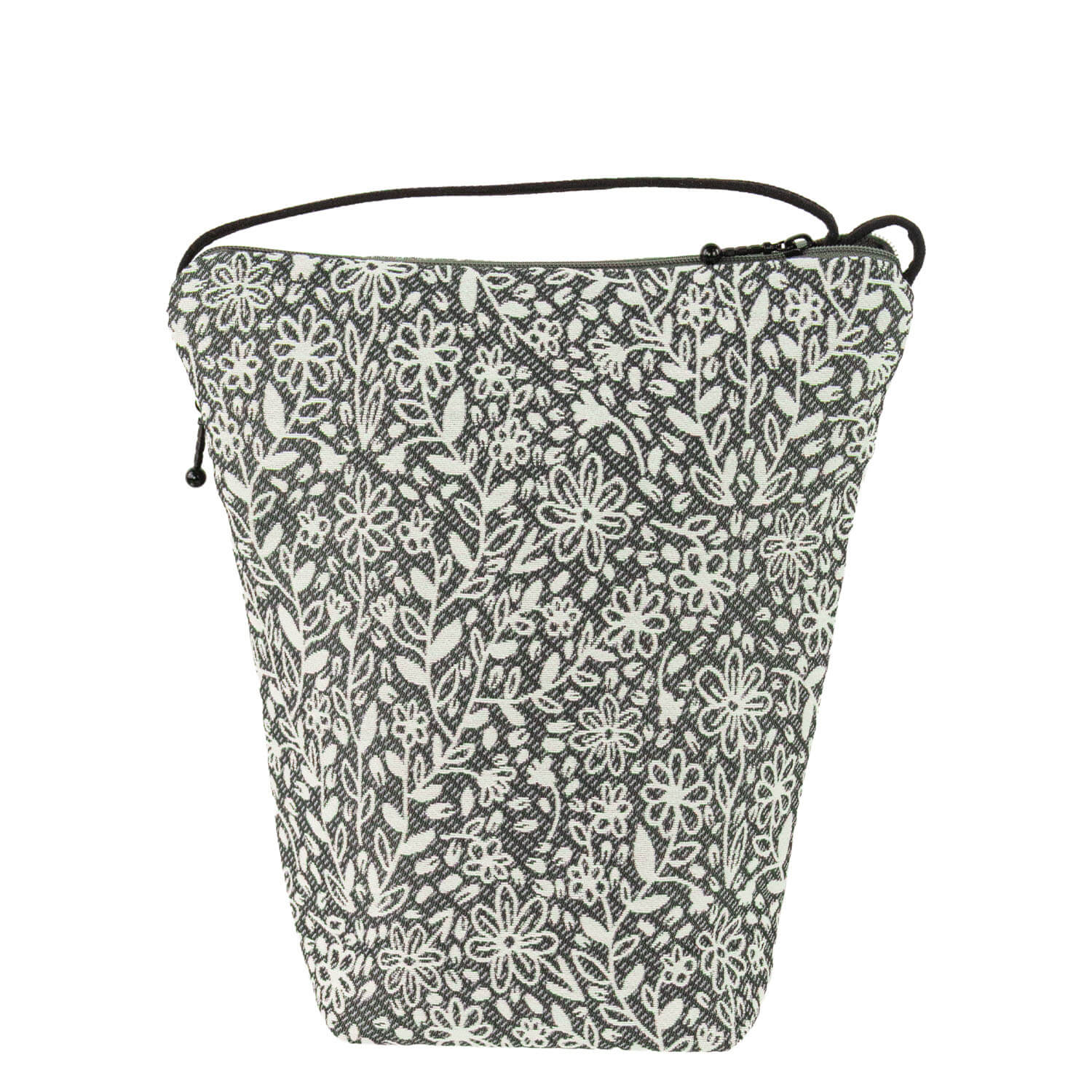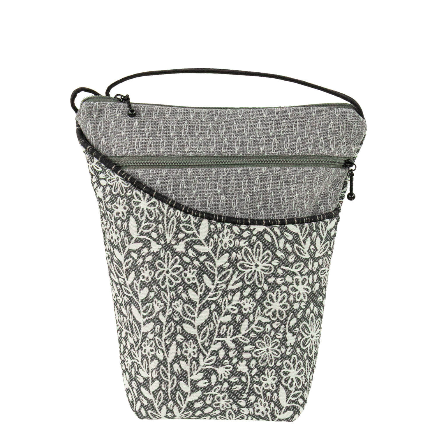 This bag is small yet roomy - easily holds my wallet, cell phone, checkbook and keys with room to spare. Love the fabric and color combination