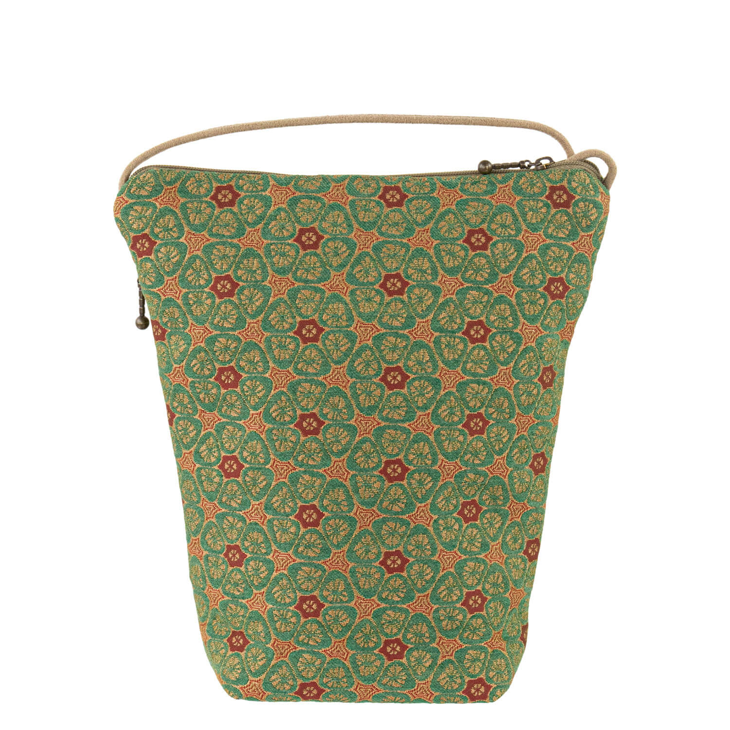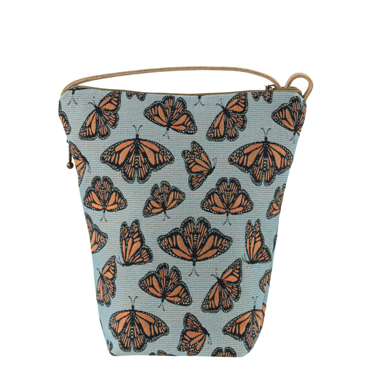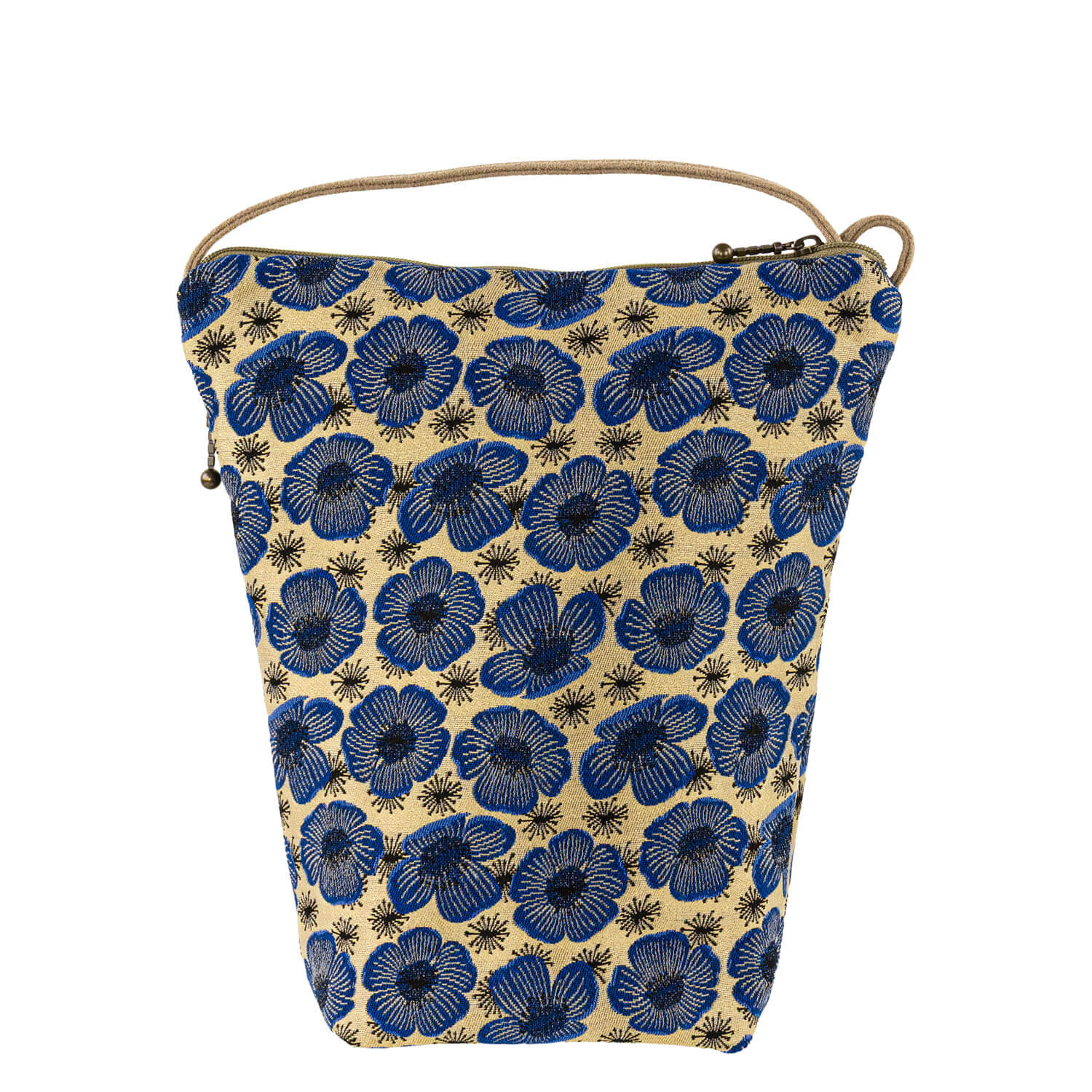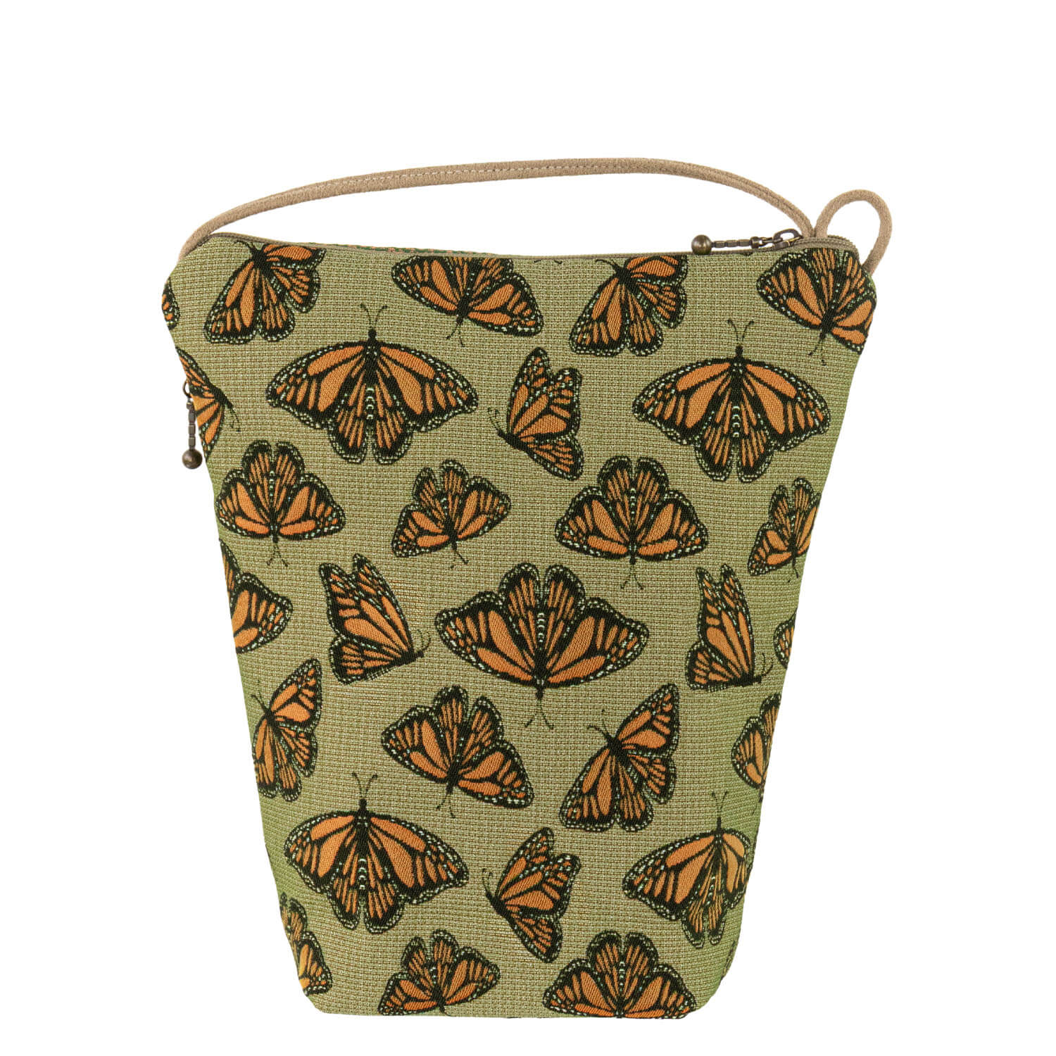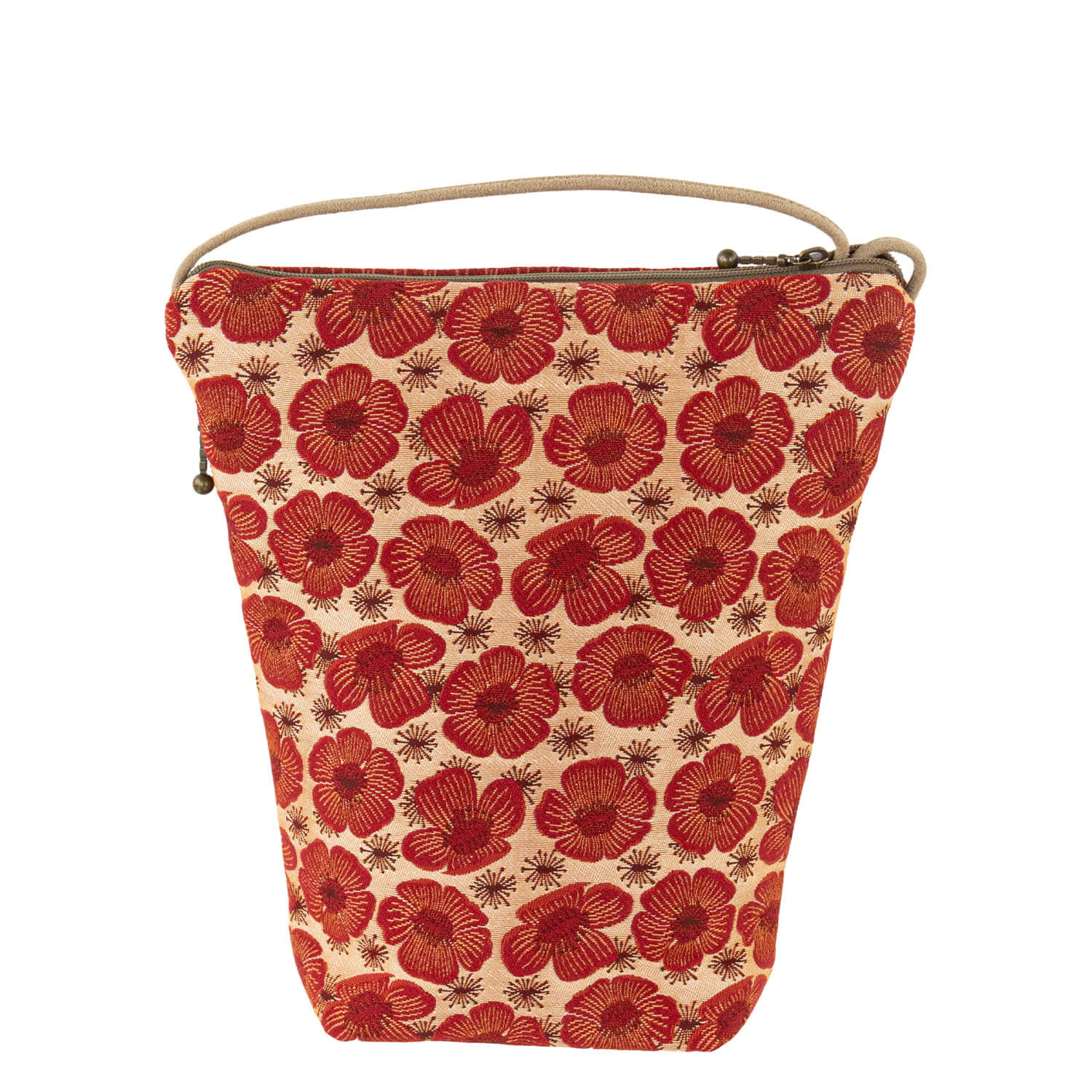 This bag is small yet roomy - easily holds my wallet, cell phone, checkbook and keys with room to spare. Love the fabric and color combination