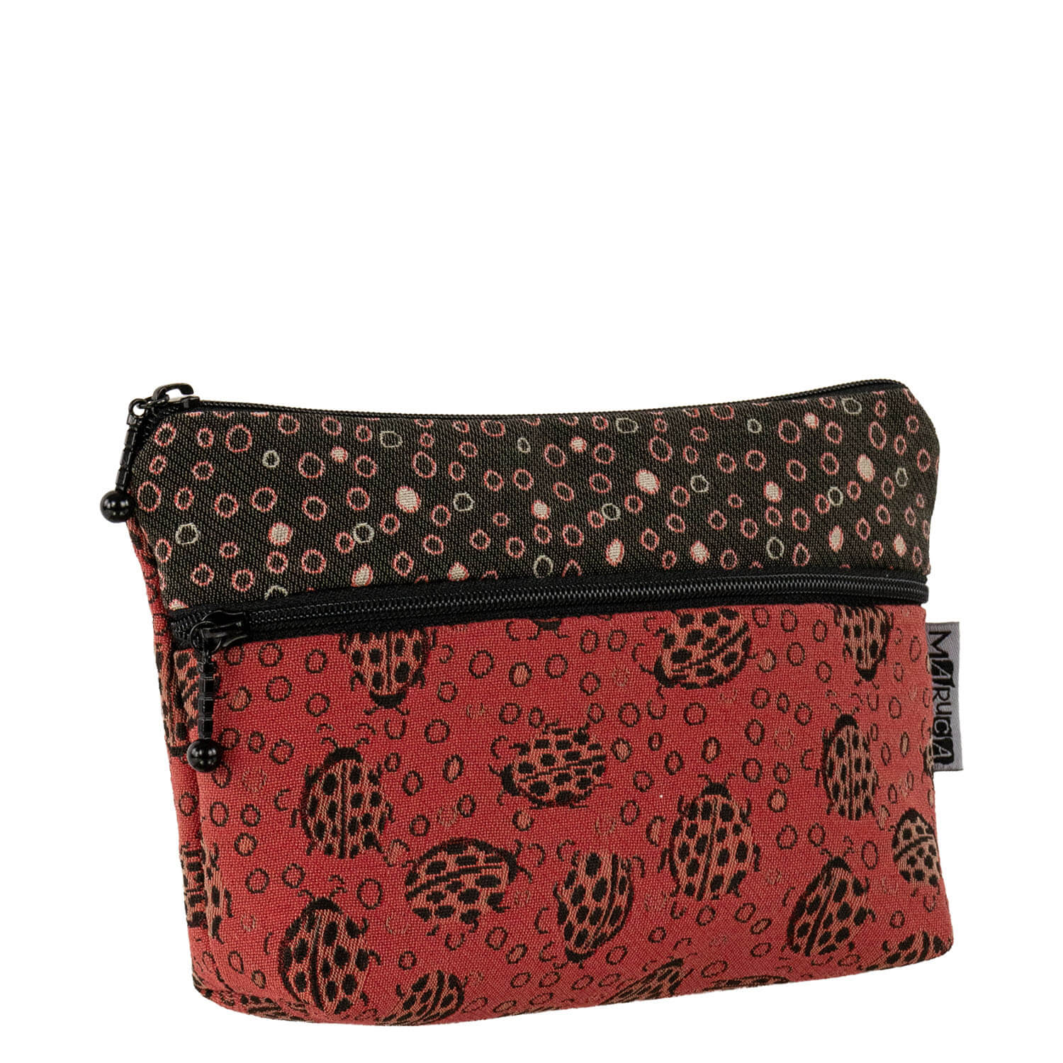 Brighten up your makeup routine with Maruca's Cosmetic bag, complete with a cozy exterior zipper pocket and a wipeable water-resistant gray liner for easy clean-up. The spacious 2" gusset is perfect for all your on-the-go beauty needs!