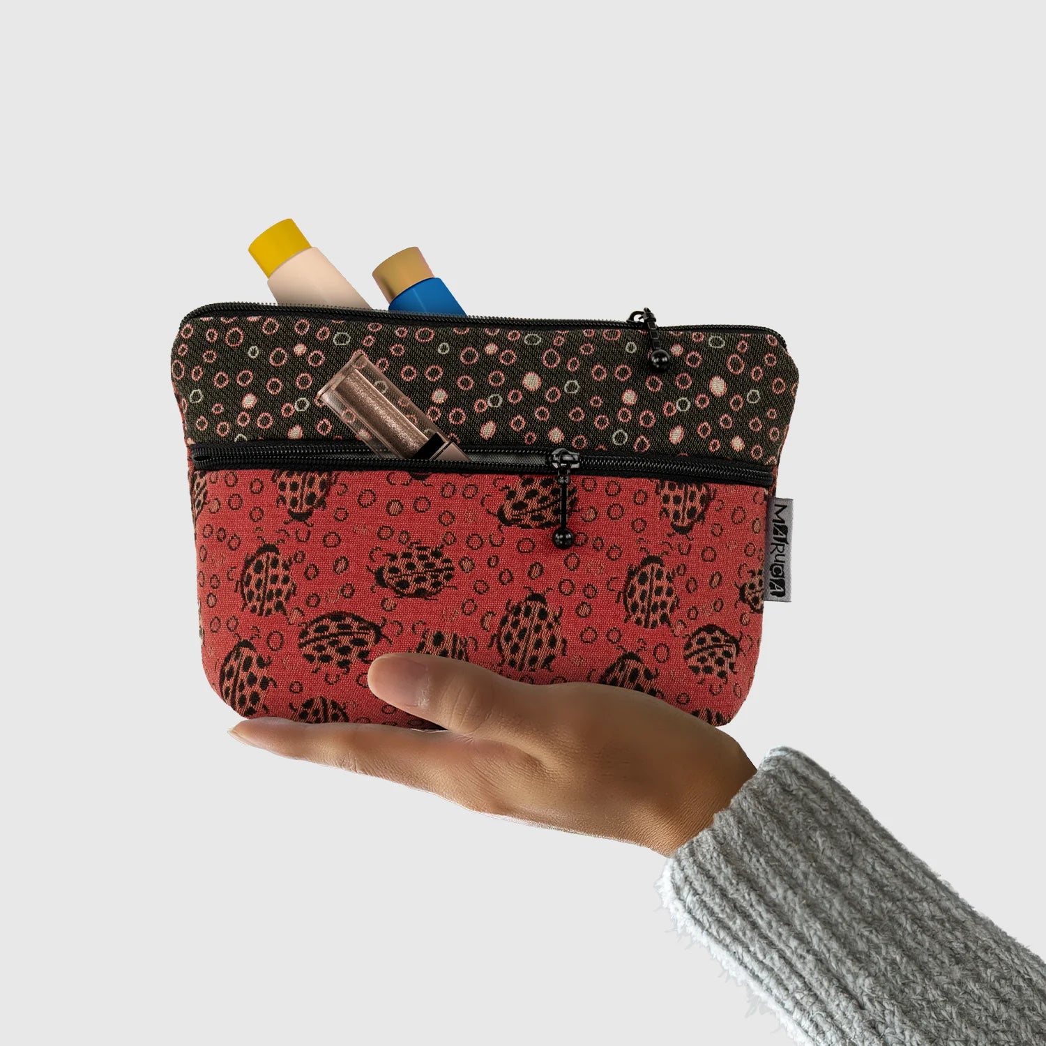 Although I’m not using this cute little bag for its designated purpose, it’s absolutely PERFECT for holding crochet hooks, needles, stitch markers, scissors, and other small (and easily misplaced) tools of the trade for the crochet artist. Like all Maruca offerings, this little bag is made from GORGEOUS fabric, with bright happy colors & a fun design. It’s sturdy enough to handle everyday use and a perfect size for organizing smaller objects and I LOVE it!