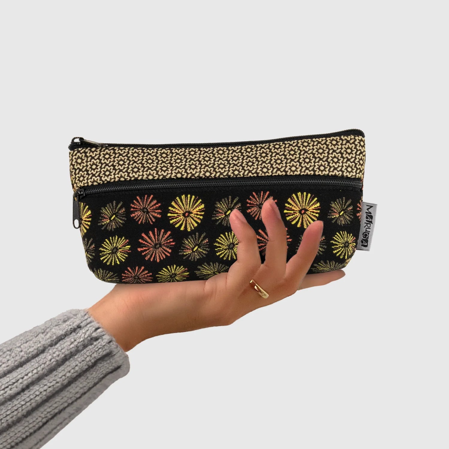 Perfect to use as a wallet or for other needs- love the fabric . Zipper on top and side pocket good additions