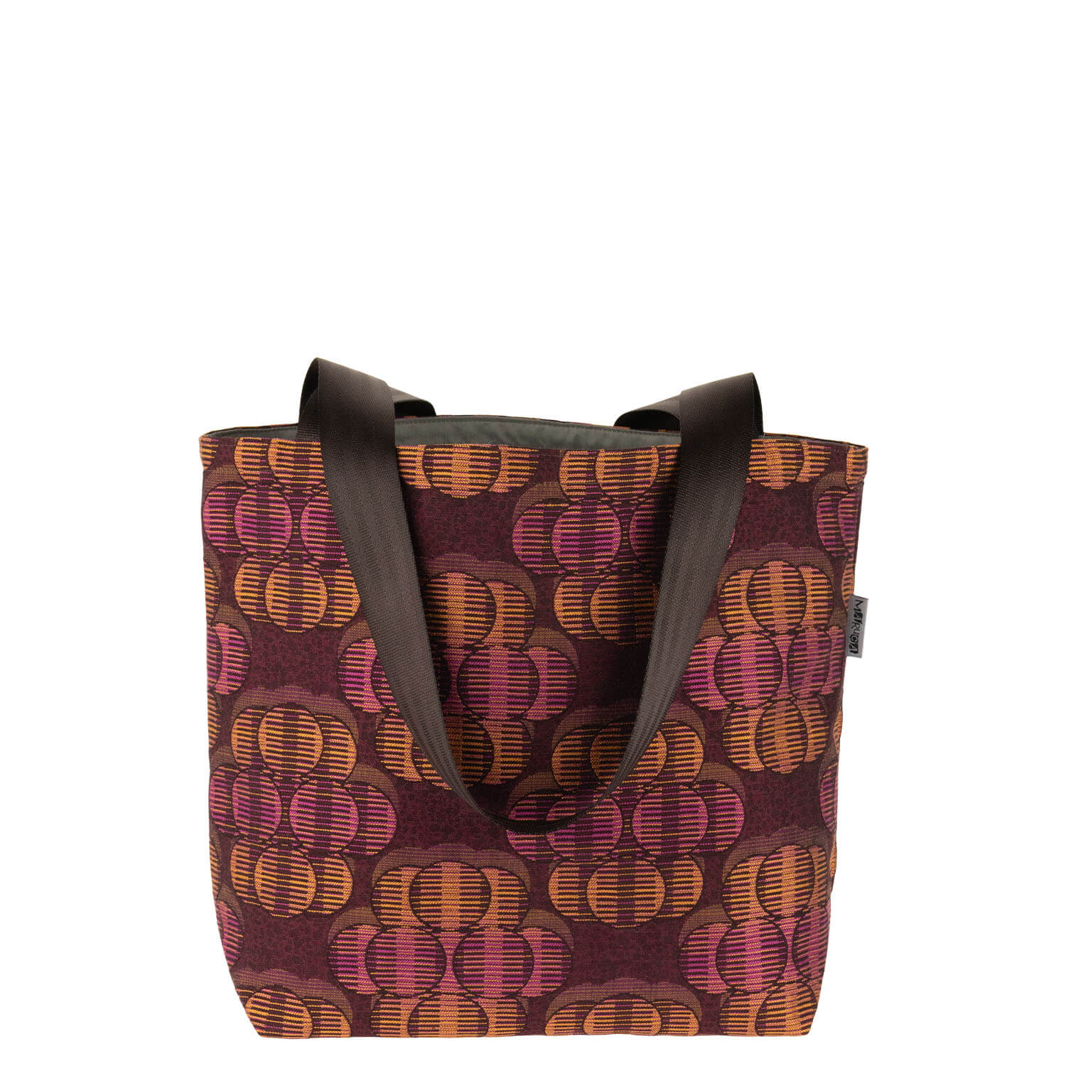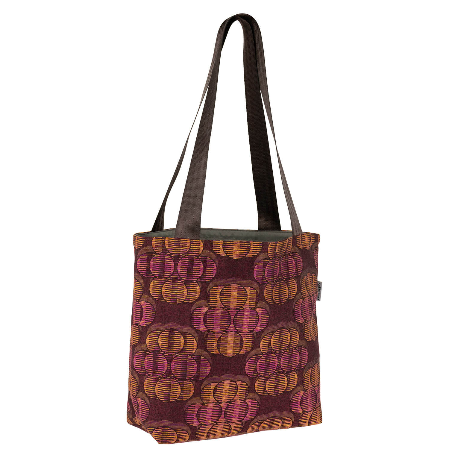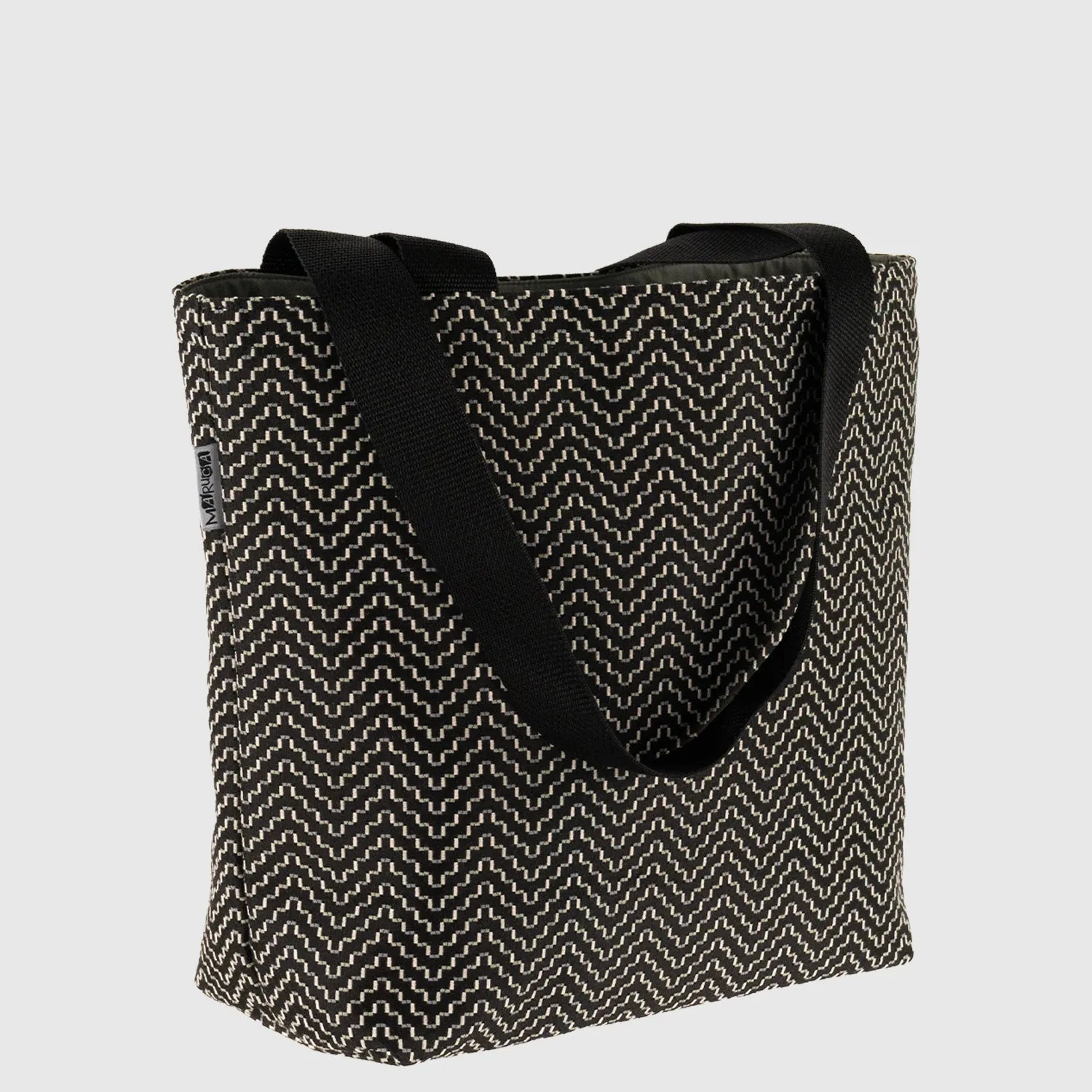 I am thrilled to have this beautiful Maruca tote bag to bring along with me for the times when I am carrying larger things. The size is perfect-not too big or small- and it's made with the same unique fabric designs as their other bags. The interior is lined with a moisture proof fabric so I even take this tote to the beach! Love this tote bag!