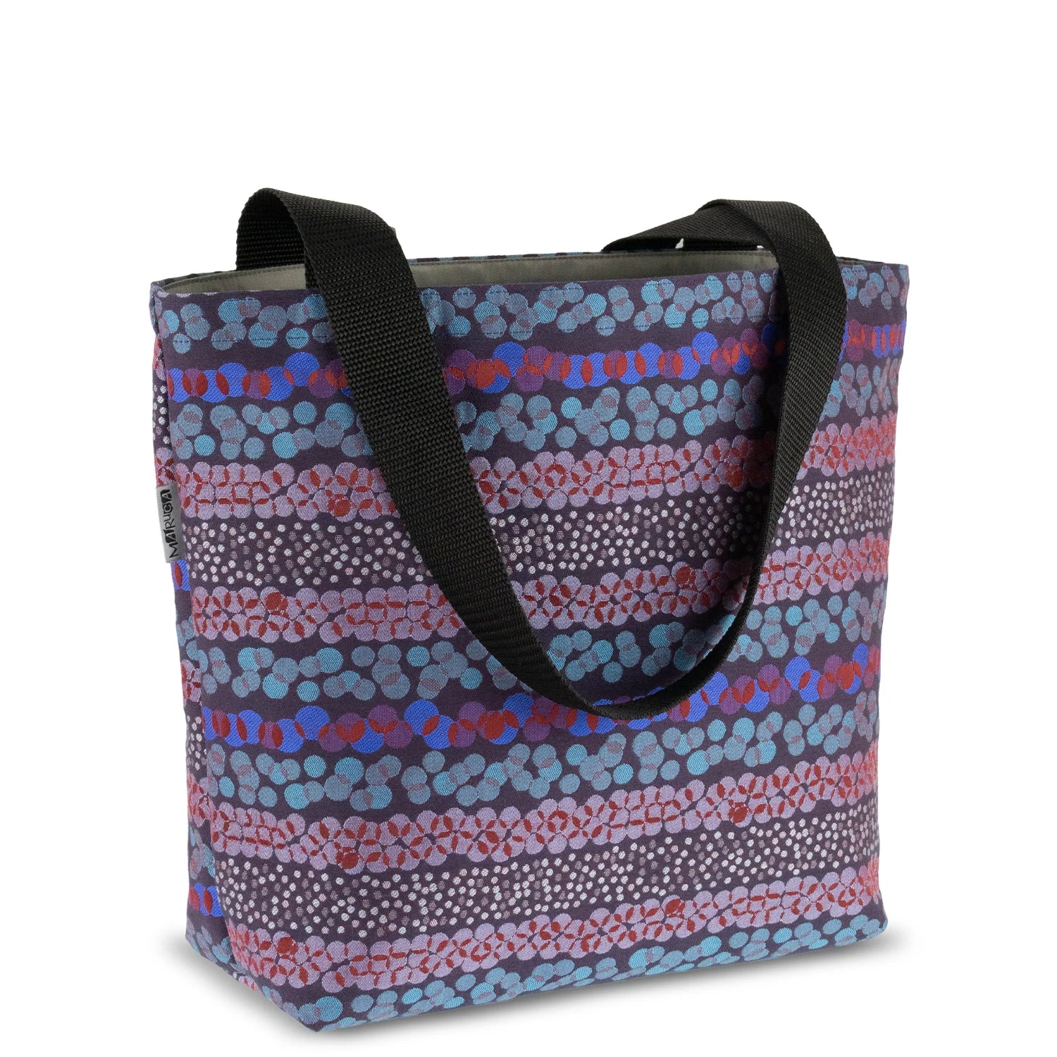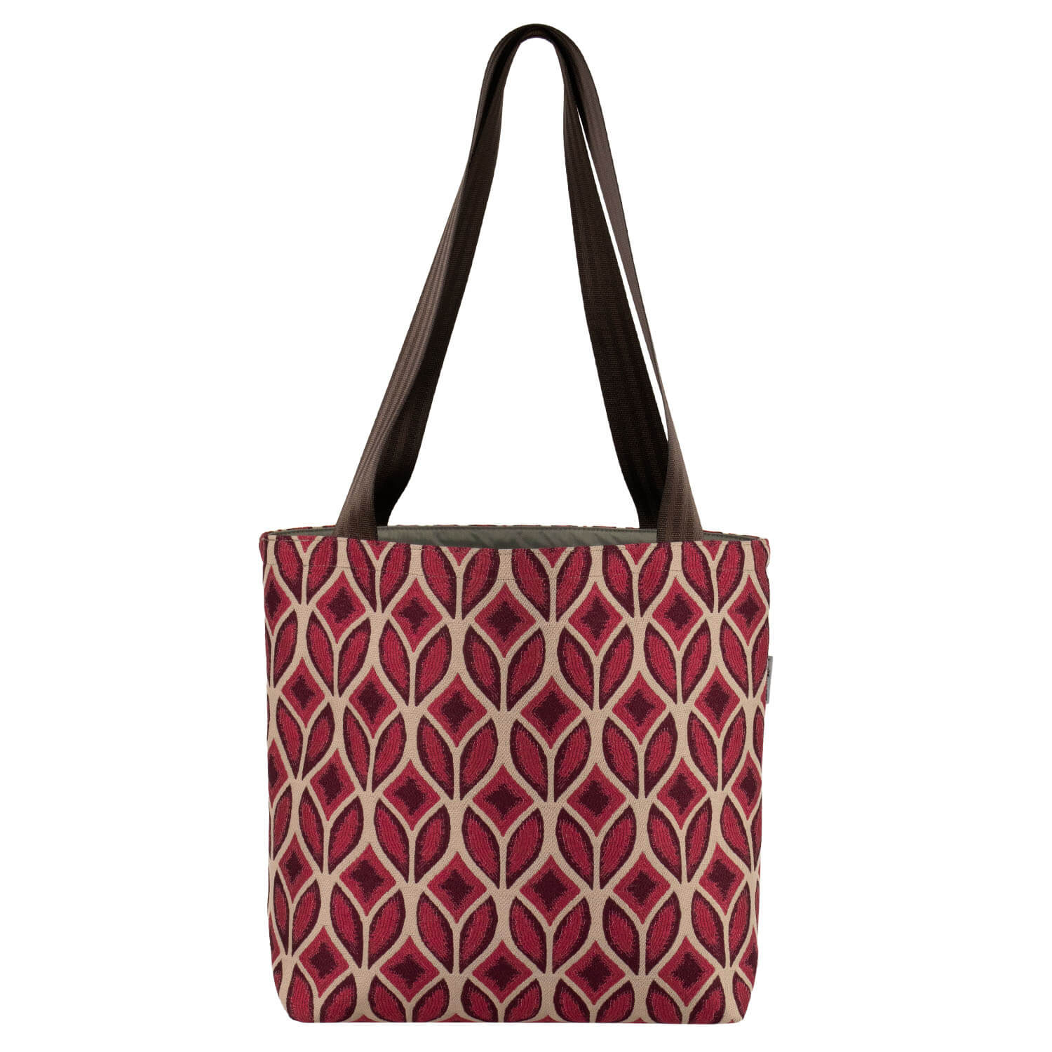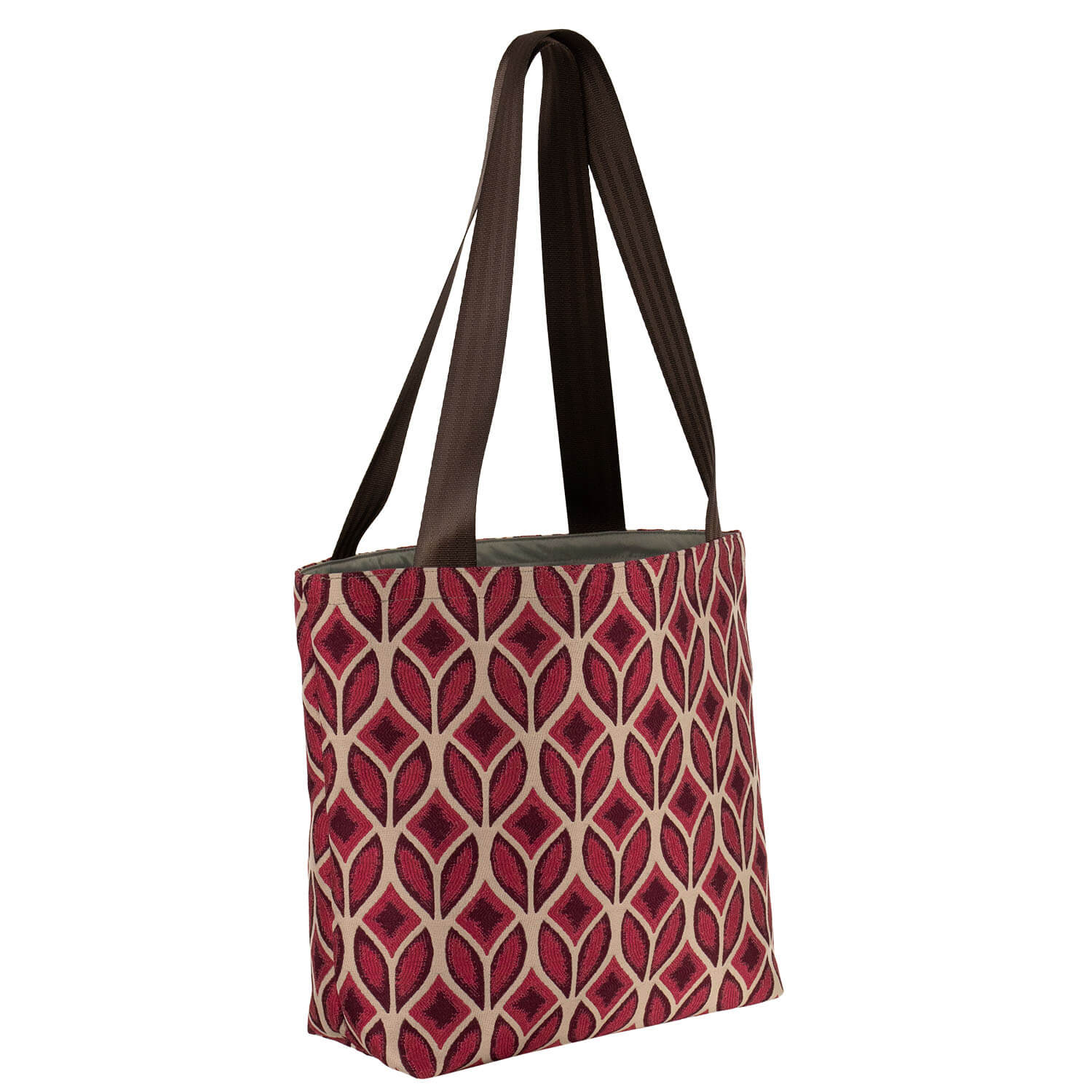 I am thrilled to have this beautiful Maruca tote bag to bring along with me for the times when I am carrying larger things. The size is perfect-not too big or small- and it's made with the same unique fabric designs as their other bags. The interior is lined with a moisture proof fabric so I even take this tote to the beach! Love this tote bag!