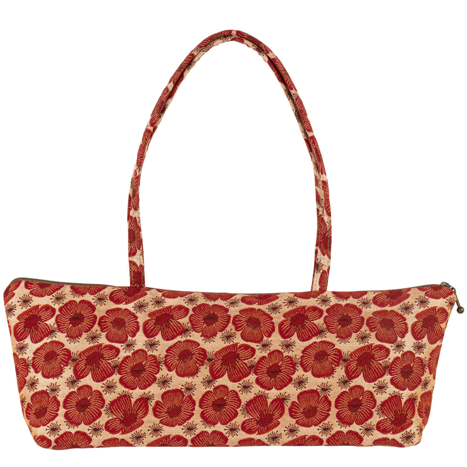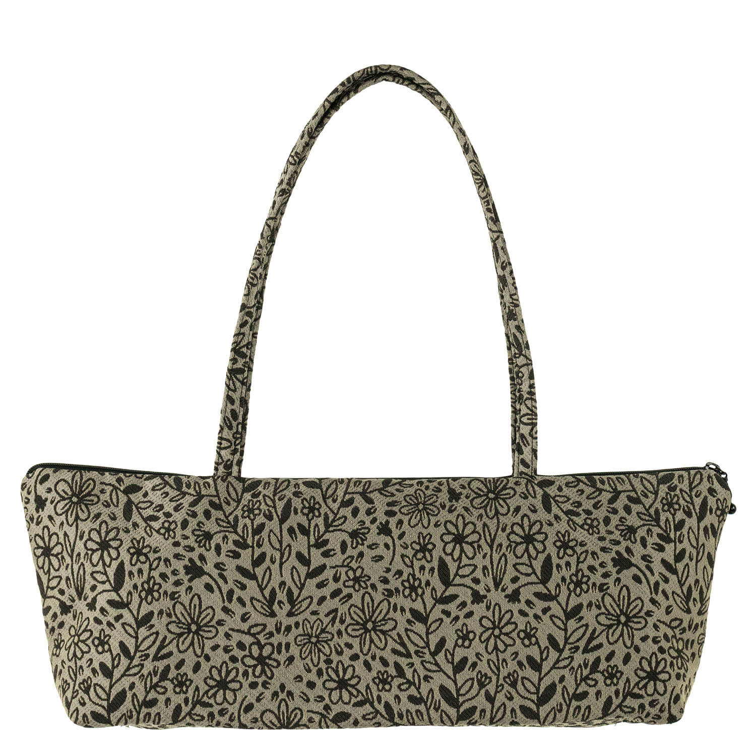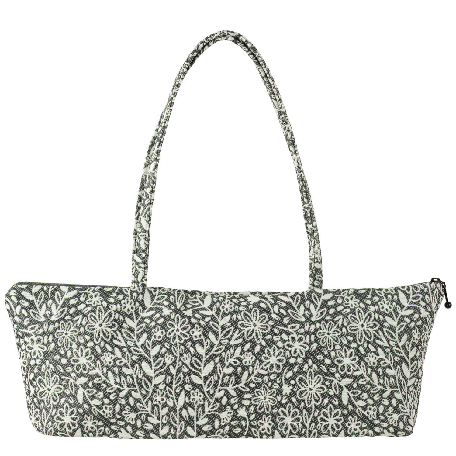 Great size and shape. Fits comfortably under your arm, helpful if carrying other bags, pushing a stroller, using a walker, etc. Fits cell phone, keys, wallet, other items. Lightweight, yet sturdy. I have been purchasing this style for years. I have many different color patterns to go with the seasons and outfits.